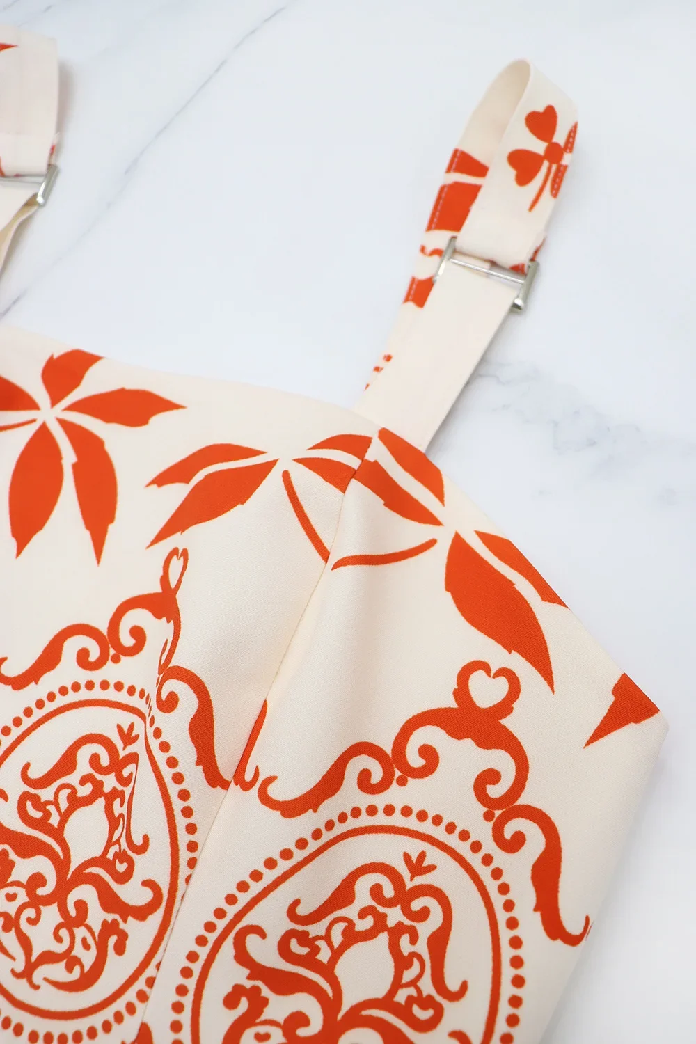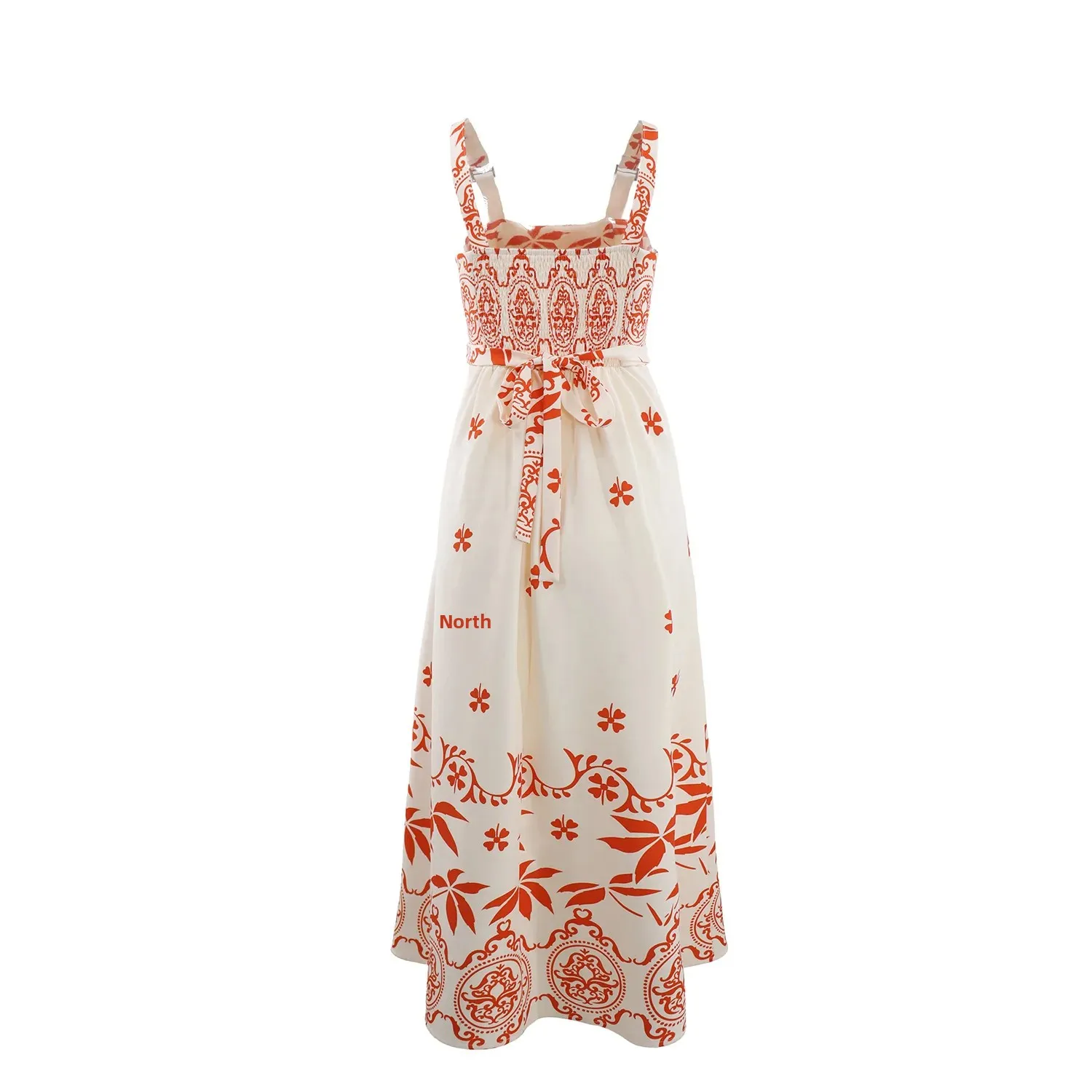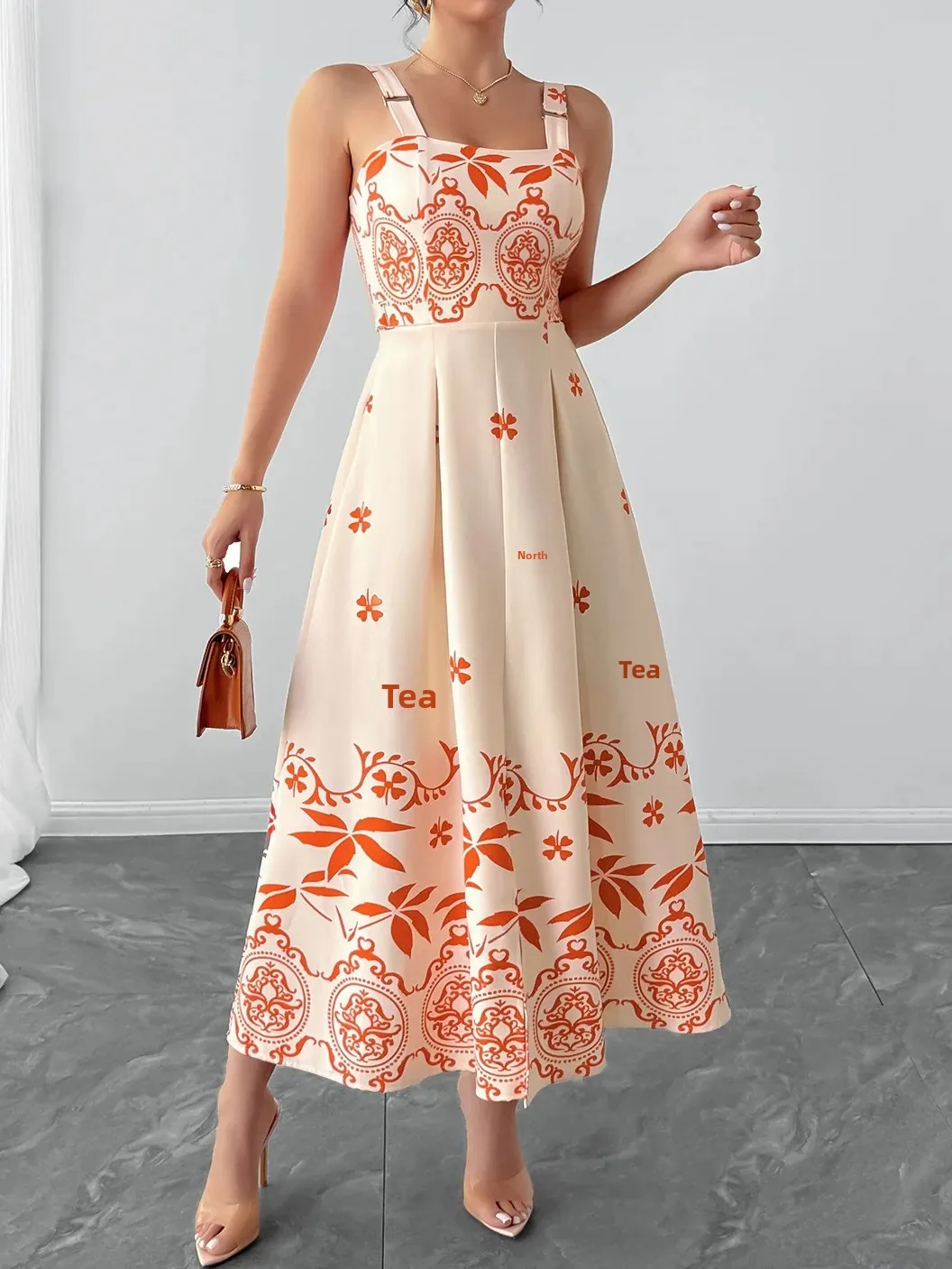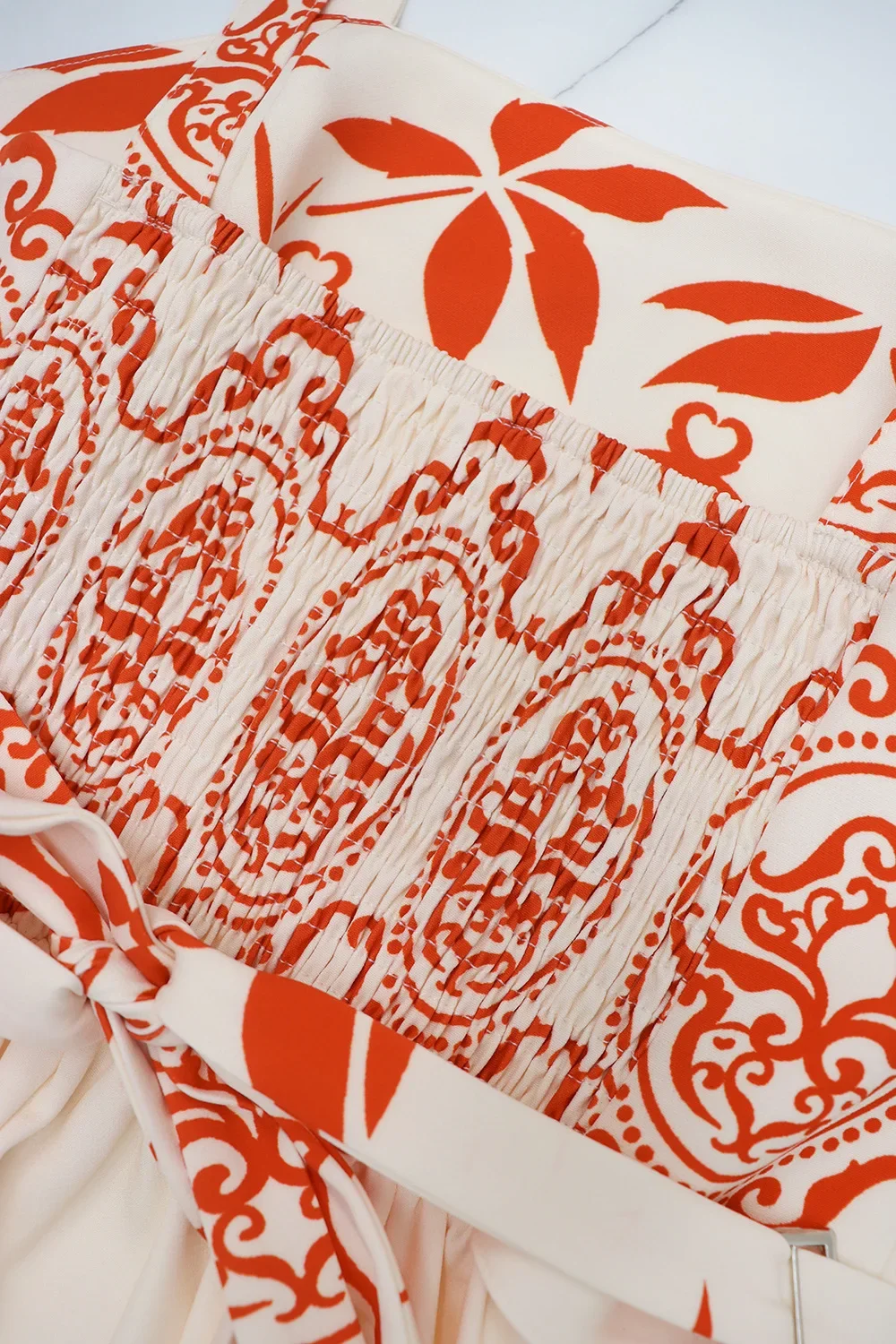 • Design com Estampa Retrô:O vestido apresenta um design com estampa retrô, adicionando um toque de charme vintage ao seu guarda-roupa de férias.